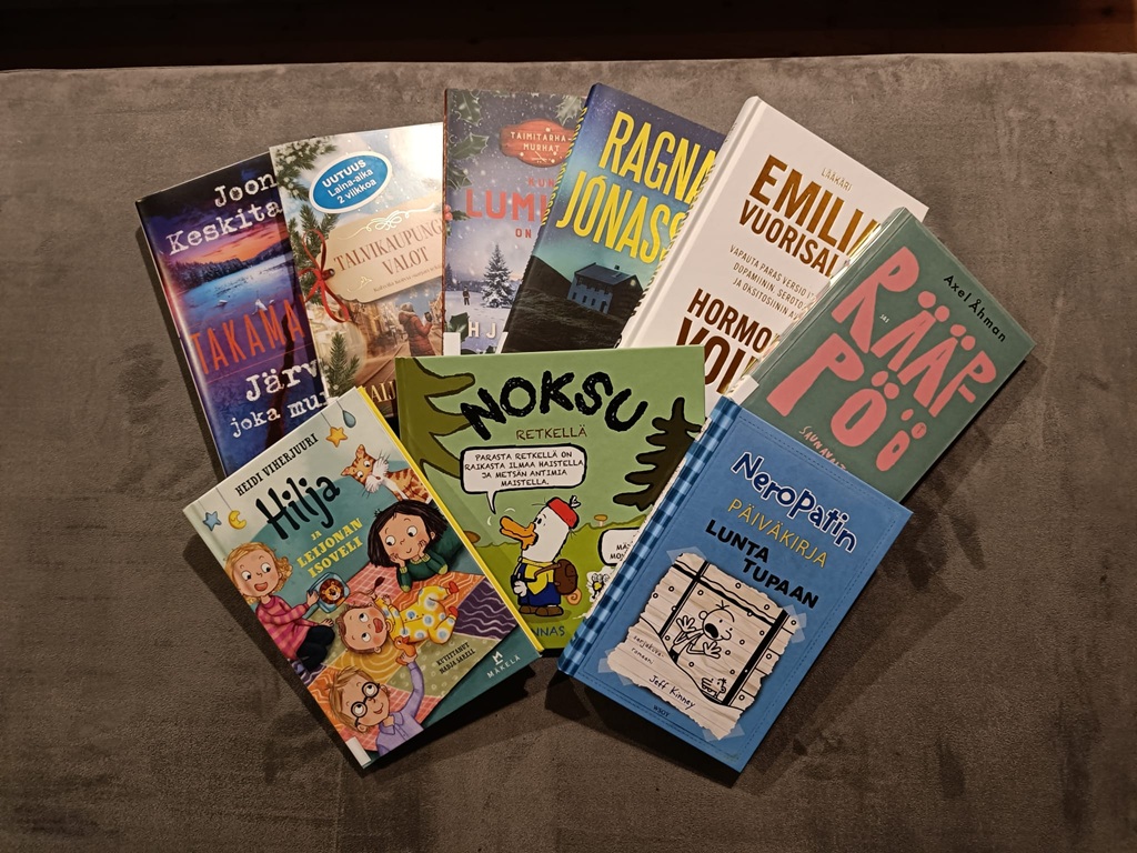 Kivirannan vanhainkodilla on kirjaston aineistoa siirtolainassa. Aineisto löytyy kärrystä Kivirannan salista. Tällä viikolla kävimme vaihtamassa aineistoa hieman jouluisemmaksi. Kärryssä olevaa aineistoa saa viedä myös asukkaiden huoneisiin. Kyselen aina välillä henkilökunnalta toiveita, minkälaista aineistoa kaivataan. Mutta mielellään kuulisin myös omaisilta / vierailijoilta toiveita aineiston suhteen. Olkaahan rohkeasti yhteydessä, mikäli mieleen tulee toiveita!