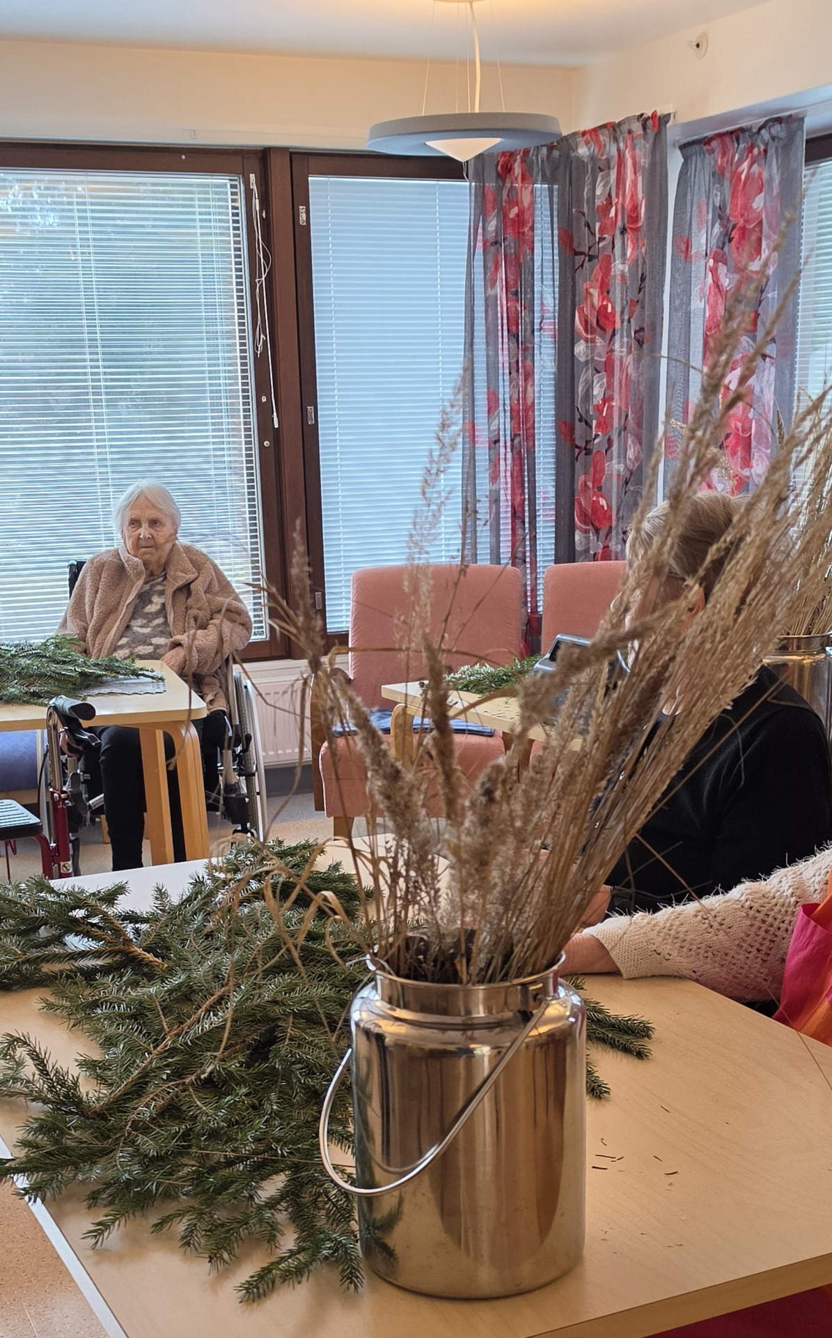 31.3.26 meillä kävi IkiOma Ikä ry pitämässä aistituokion. Aistituokiossa yhdistettiin virtuaalinen lyhytfilmi ja aistien aktivointi luonnonmateriaaleilla. Tunnelmaa tilaan luotiin lyhtyjen, heinien, kaislojen ja havujen avulla. Lyhytfilmissä lapset löysivät talven iloa maatilalta ja filmin aikana asukkaat pääsivät maistelemaan kauranjyviä, tuoksuttelemaan kuivaa heinää ja tunnustelemaan hevosen jouhia ja lampaan pehmeää villaa. Suu saatiin makeaksi Omar -karkeilla. Asukkaat olivat innoissaan tuokiosta, tuoksut ja maut olivat tuttuja ja toivat mieleen muistoja. Saattoipa tuokion myötä joku saada myös uusia aistielämyksiä.
