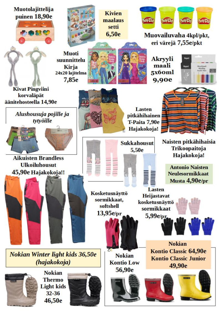 Myymälässä on edustettuna laadukkaita merkkituotteita, kuten Helkama-pyörät, NunnaUunit, Upo-kodinkoneet, Viki-kiukaat ja Stiga-puutarhakoneet.