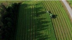 Nykypäivän tekniikalla heinän korjaaminen on tosi tehokasta. Jari Tuukkanen kuvasi dronella Jukka Salaman työskentelyä pellolla.