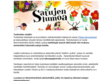 Uusimmat uutiset Kulttuuri16.02.2026 Kirjaston alkuvuoden kuulumisia Kirjastossa vuosi on lähtenyt vauhdikkaasti käyntiin. Monenlaista kivaa on jo ehtinyt tapahtumaan... [ Lue lisää ] Lapset ja nuoret16.02.2026 Harsunkankaan laskiaisrieha kokosi iloisesti väkeä yhteen Harsunkankaalla vietettiin laskiaisriehaa hyvässä säässä ja iloisessa seurassa. [ Lue lisää ] Lapset ja nuoret16.02.2026 SATUJEN LUMOA-SATUTUOKIOT 20.2.2026 Avoimia Satujen lumoa satutuokioita pe 20.2. vanhan Muksulan tiloissa. Klo 9.30 päiväkoti-... [ Lue lisää ] Meiltä ja muualta15.02.2026 Suomenhevosen todennäköisestä ja todellisesta historiasta (osa 5) Kertojana Hannes Keskitalo Aluksi korjaus Hokkalan seppä Toppisen oletettuun pajan sijaintiin. Edellisessä kirjoituksessa (osa... [ Lue lisää ] Vapaa-aika14.02.2026 Kinkeriperinne elää, Koskimäki - Huhtalan kylällä [ Lue lisää ] Seurakunnat13.02.2026 Diakoniatoimisto kirkossa avoinna keskiviikkoisin 9.30 -11 ilman ajanvarausta Kuten monet jo tietävätkin, kaikki seurakunnan toiminta on nyt siirtynyt kirkkoon. Myös... [ Lue lisää ] Lapset ja nuoret13.02.2026 TÄYSKYMPPI KOULUMUMMOILUA! Nopolan koulun kolmosluokassa tiistaiaamut vietetään säännöllisesti koulumummo Eliisa Heiskasen... [ Lue lisää ] Liikunta ja urheilu13.02.2026 KyKy aloitti 81. toimikautensa - yhteisön voima näkyy Urheiluseura Kyyjärven KyKy käynnisti jo 81. toimintakautensa – hieno rajapyykki, joka kertoo... [ Lue lisää ] Kulttuuri12.02.2026 Niina Laitinen saapuu kirjastoon Suosittu neulesuunnittelija- ja kirjailija Niina Laitinen esiintyy kirjastossa tiistaina 24.2. klo... [ Lue lisää ] In memoriam09.02.2026 Pertti Kotka saateltiin viimeiselle matkalle Pertti Johannes Kotka syntyi Kyyjärvellä 18.6.1957 Siiri ja Reino Kotkan perheeseen. [ Lue lisää ] Liikunta ja urheilu09.02.2026 Kyyjärveläisten menestyneiden urheilijoiden ilmoituspyyntö Kyyjärven kunnan sivistys- ja hyvinvointilautakunta huomioi vuosittain kunnan menestyneitä... [ Lue lisää ] Hyvinvointi09.02.2026 SOLMUJA PARISUHTEESSA-RYHMÄ [ Lue lisää ] Kulttuuri05.02.2026 Pieni maalima julkaistiin Paukkupakkanen ulkona ei haitannut Kyyjärven kirjaston tiistaista tapahtumaa. [ Lue lisää ] Lapset ja nuoret05.02.2026 Koko perheen laskiaisrieha! Tervetuloa laskiaisriehaan Harsunkankaalle! [ Lue lisää ] Vapaa-aika05.02.2026 LÄMPIMÄSTI TERVETULOA JÄRJESTÖILTAAN! Kutsumme kaikki järjestö-, yhdistys- ja seura-aktiivit sekä seurakunnat mukaan järjestöiltaan... [ Lue lisää ] Liikunta ja urheilu05.02.2026 Juoksu, hiihto ja keilatuloksia 2026 Jarmo Lautanen Italiassa 29.1 - 6.2.2026. Jarmolle Pronssia M65 30 Km:llä Suomelle Hopeaa... [ Lue lisää ] Seurakunnat05.02.2026 Kynttilänpäivän messu Kynttilänpäivän messu kirkossa klo 14 aloittaa oman kappeliseurakuntamme Yhteisvastuu 2026 -... [ Lue lisää ] Liikunta ja urheilu04.02.2026 KyKy-Betset vs VaLePa La 7.2. Klo: 17:00 Keskimaan Isännyysottelu. S-Etukortilla kaksi lippua yhden hinnalla. Etuhintaiset liput ovat... [ Lue lisää ] Liikunta ja urheilu04.02.2026 Luistelurata loistokunnossa – liiku jäällä omalla vastuulla Lähiliikuntaa talvisessa Kyy Yorkissa ***11.2. päivitys: jäälle tehty ura aurattu lumisateen... [ Lue lisää ] Kunnalliselämä03.02.2026 Kyyjärven kunnanhallituksen päätöksiä 2.2.2026 [ Lue lisää ] Vapaa-aika01.02.2026 Vapepa Länsi-Suomen maakuntatoimikunta uudistus [ Lue lisää ] Vapaa-aika31.01.2026 Kyyjärveläinen vapaaehtoinen palkittiin Vapepan kultaisella ansiomitalilla Tuurissa jaettiin la 31.1.2026 arvostettu tunnustus – kultainen ansiomerkki yli 30 vuoden... [ Lue lisää ] Seurakunnat31.01.2026 Kappeliseurakunnan toimintaa Helmikuun tapahtumia [ Lue lisää ] Kulttuuri30.01.2026 Aila Ahtilasta Kyyjärven kulttuurihenkilö 2025 Kyyjärven kunnan sivistys- ja hyvinvointilautakunta palkitsi vuoden kulttuurihenkilöksi valitun... [ Lue lisää ] Vapaa-aika30.01.2026 Keväällä juhlivat Karstulan lukion vuoden 1976 valkolakit Mimma Laukka: Karstulan yhteiskoulun lukiosta kirjoitti ylioppilaiksi 50 vuotta sitten 39 nuorta.... [ Lue lisää ] Liikunta ja urheilu30.01.2026 Harrastusmahdollisuudet Kyy Yorkissa – talvikauden parhaat elämykset Paikkakunnan talvinen luonto tarjoaa monipuoliset ja houkuttelevat mahdollisuudet liikkua, ulkoilla... [ Lue lisää ] Hyvinvointi29.01.2026 OSALLISUUSVIIKKO 2.-5.2.2026 Suomessa vietetään 2.–5.2.2026 valtakunnallista osallisuusviikkoa, jonka tarkoituksena on herättää... [ Lue lisää ] Asuminen29.01.2026 New Kyy Yorkers : Pentti Anttila Kyyjärven pappila vakuutti ostajansa ensisilmäyksellä. Hyväkuntoinen keltainen hirsipappila herätti... [ Lue lisää ] Asuminen29.01.2026 New Kyy Yorkers : Syrjälä & Yrttikoski Pohjoisen kautta Saunakylän rauhaan – “Tänne metsän keskelle on hyvä tulla kotiin”. Tiilitalo... [ Lue lisää ] Liikunta ja urheilu29.01.2026 Tule mukaan tekemään hyvää oloa, ulkoilun ja liikunnan iloa! Meille tärkeintä on aito liikunnan ilo - oli kyseessä hiihto, maastopyöräily, sähly, lentopallo,... [ Lue lisää ] Kulttuuri28.01.2026 Kyyjärveläistä osaamista maailmalle (juttua päivitetty 28.1.2026) Käsikirjoittaja kirjailija Veikko Erkkilä ja ohjaaja Raimo Salo ovat MTV3 Huomenta Suomi... [ Lue lisää ] Hyvinvointi28.01.2026 VARAUTUMISILTA KE 4.2. KIVIRANNASSA Kuinka hyvin olet varautunut esimerkiksi pitkittyneeseen sähkökatkon aiheuttamaan tilanteen tai kun... [ Lue lisää ] Hyvinvointi27.01.2026 Sosiaali- ja terveydenhuollon kuljetuspalveluihin oikeutetut asiakkaat tilaavat kuljetuksen uudesta numerosta 1.2.2026 alkaen Keski-Suomen hyvinvointialueella Taksi Helsinki tuottaa 1.2.2026 alkaen sosiaali- ja terveydenhuollon kuljetusten välitys- ja... [ Lue lisää ] Kulttuuri26.01.2026 TUULIKKI RAUMAN KIRJAN JULKISTAMISTILAISUUS Tuulikki Rauman kolmas pakinakirja on valmistunut. Kirjan julkistamistilaisuus on Kyyjärven... [ Lue lisää ] Liikunta ja urheilu24.01.2026 KyKy-Betset vs TUTO Volle