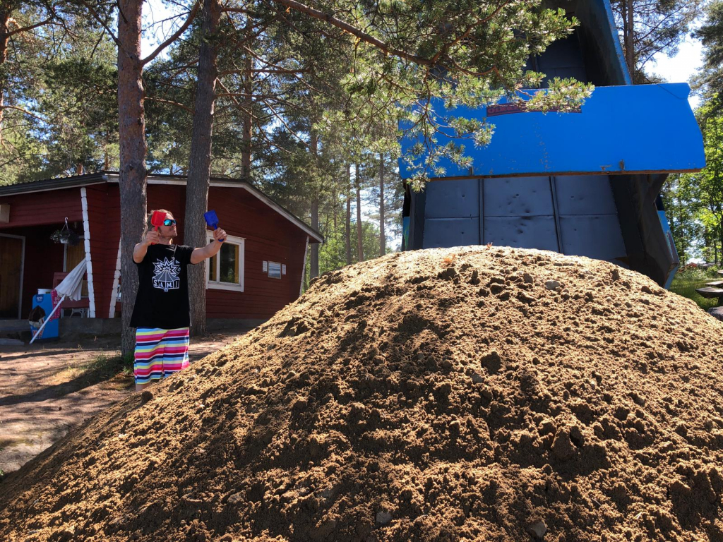 Oikarin Sora toi uimarannalle tänään ison kasan hiekkaa ja toivotti samalla kaikille mukavaa ja aurinkoista kesää! Tulkaahan kattomaan miten ranta nyt yhteistyöllä oikein levenee.