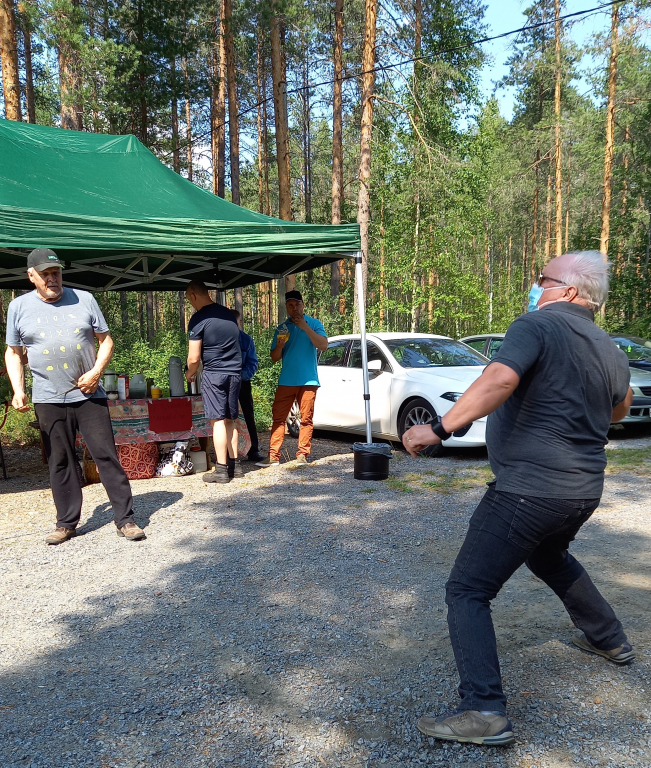 Väkeä kokoontui mukavasti nauttimaan hyvästä seurasta, maukkaista tarjoiluista ja arpajaisista. Osa uskaltautui kisailemaan kuulakilpailuun.