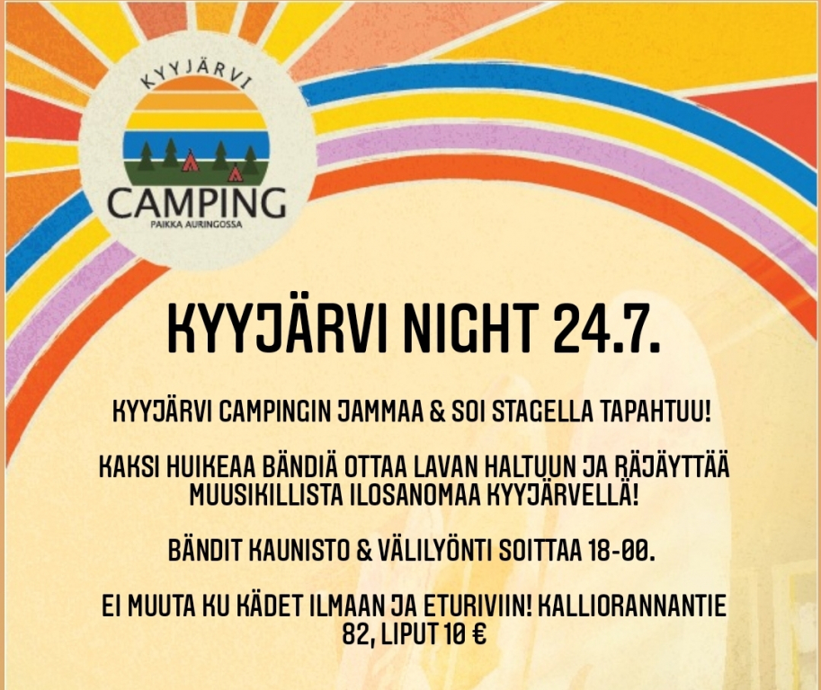 Kaksi ilmiömäistä bändiä valtaavat lavan ja räjäyttää musiikillista ilosanomaa Kyyjärvellä! Bändit Kaunisto & Välilyönti soittaa kuudesta puoleenyöhön. Ei muuta ku kädet ilmaan ja eturiviin!