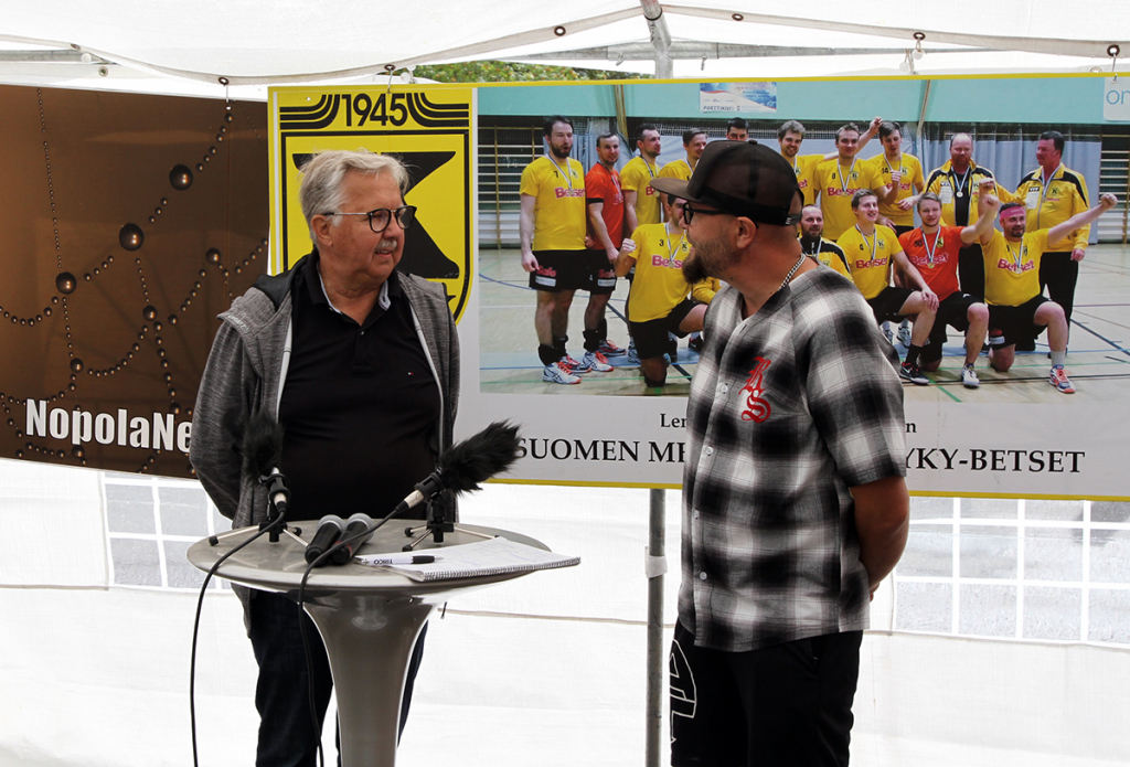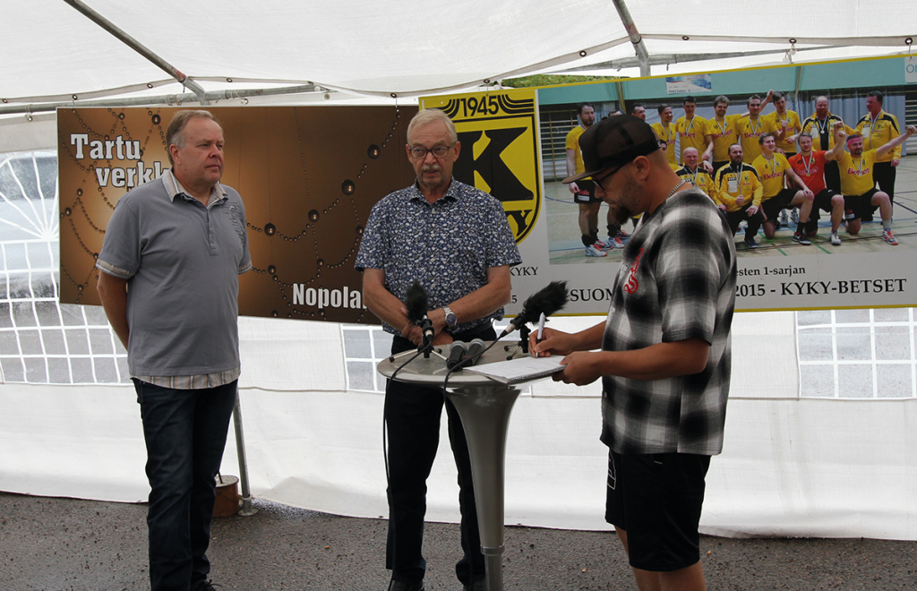 Henrik Huumarkangas juonsi tapahtuman ja jututti sponsoreita sekä maajoukkeen pelaajia leppoisissa tunnelmissa. Tarjolla oli myös kalasoppaa ja kahvit päälle. Pieni sadekuurokaan ei haitannut tapahtumaa. Palkinnoksi osallistujat saivat kunnan sponsoroimat We love Kyyjärvi - kylmävyölaukut vai millä nimellä niitä nyt sitten kutsutaankaan.