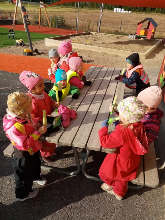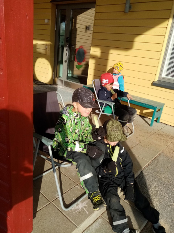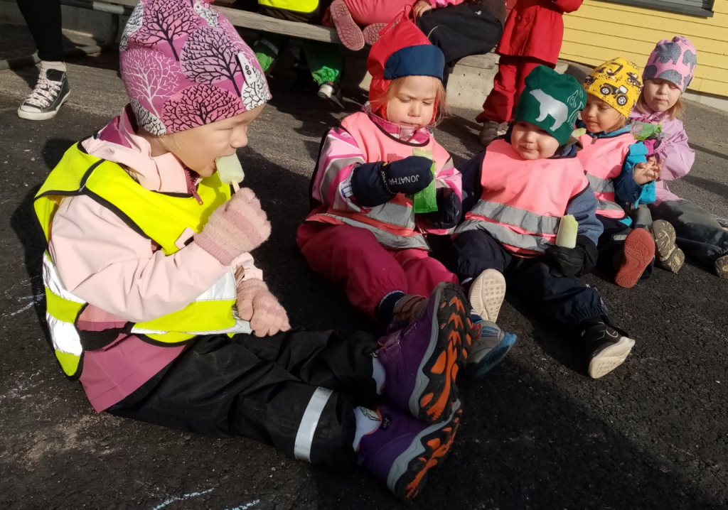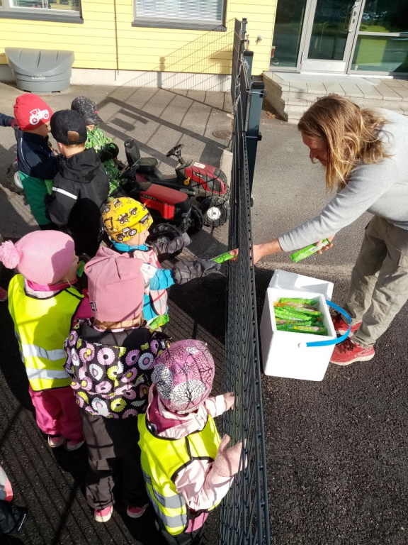Päiväkotilaiset saivat kokea tänään melkoisen yllätyksen! Kyyjärvi Campingin Roope tuli vierailulle ja lahjoitti päiväkodille kokonaisen kylmälaukullisen jäätelöitä! Vastassa oli monta iloista pikku veijaria! Lapset pääsivät tietysti heti herkuttelemaan ja jäipä jäätelöitä vielä pakkaseenkin asti pahan päivän varalle. Kiitoskorttiin kirjoitimme säkeistön laulusta Minä soitan harmonikkaa: