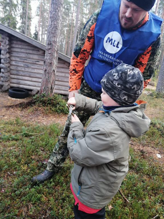 Lauantaina 18.9 keli oli mukavan syksyinen, kun MLL:n perheparkki kokoontui ensimmäisen kerran. Perheparkkiin oli järjestetty erilaisia tehtävärasteja. Aluksi etsittiin sopivan kokoisia kiviä ja keppejä, jotka piti pudottaa laatikon reikiin. Tämän jälkeen sai kartan. Karttaan oli merkattu tehtävärastien paikat. Rastit sai kiertää omaan tahtiin ja aika helposti lapset taisivatkin osata suunnistaa oikeisiin paikkoihin.