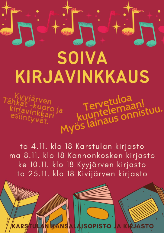 - Soiva kirjavinkkaus keskiviikkona 10.11. klo 18 (Tähkät-kuoro ja kirjavinkkari esiintyvät)