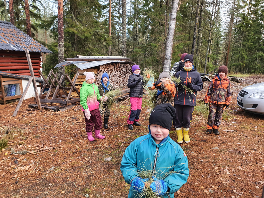 Sunnuntai alkoi luonnollisesti aamupalalla. Seuraavana oli vuorossa taikaolentojen hoito. Jokainen sai kannettavakseen pari porkkanaa ja tukon heinää, ja veimme nämä lähistöllä olevien hirvinokkien (tunnetaan myös hirvinä) ruokintapaikoille. Tämän jälkeen tupa kerrallaan tutustuimme tähtitaivaaseen Stellarium-puhelinsovellusta apuna käyttäen. Sitten oli vuorossa vapaa-aikaa leikkiä ja pelata, kunnes keittiö oli saanut lounaan valmiiksi. Lounaan jälkeen oli ohjelmassa tavaroiden pakkaaminen, lähtökaakaot sekä luonnollisesti tupapisteiden laskeminen. Tarina ei kerro, mikä tupa voitti, sillä jokaisen tuvan pistepurkki oli ääriään myöten täynnä! Valvojaoppilaat jakoivat pisteet (eli karkit) tupansa oppilaille. Tämän jälkeen suuntasimme kotimatkalle.