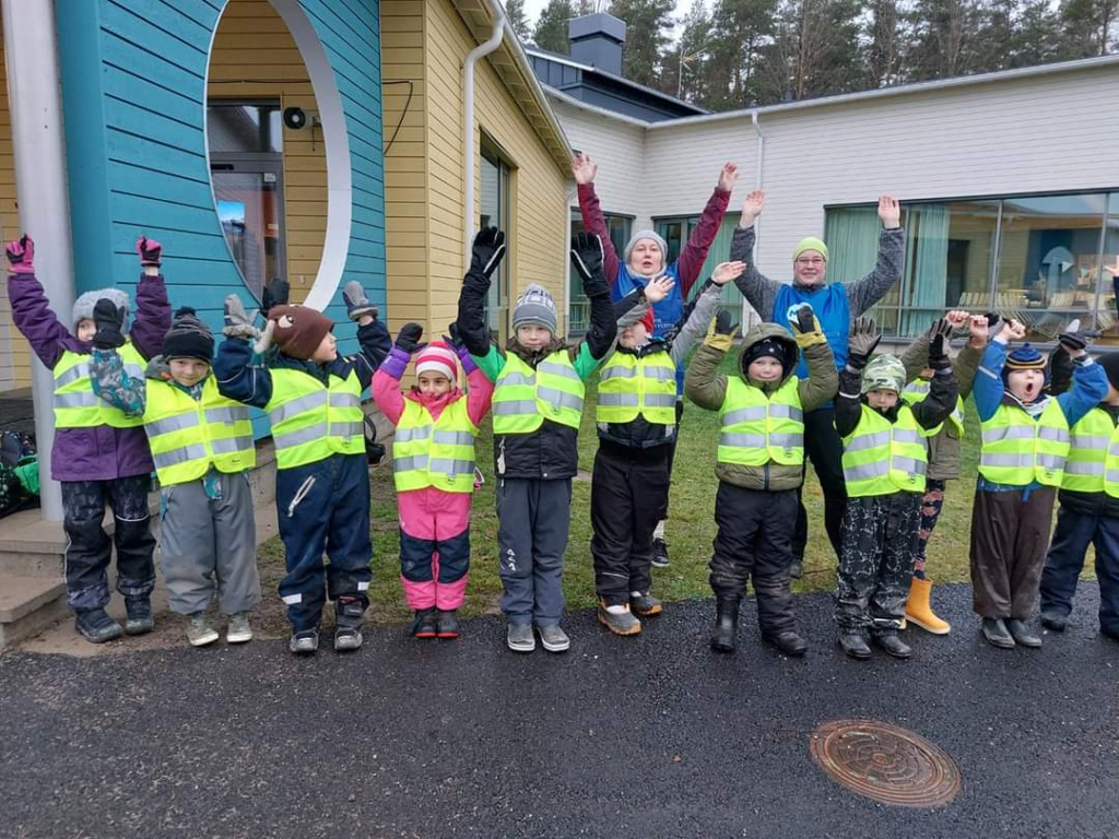 Rahtarit ry lahjoitti yhdistyksellemme 14 kappaletta heijastinliivejä. Laitoimme lahjoituksen eteenpäin viemällä heijastinliivit Nopolan koulun eskareille. He ottivat iloisena lahjoituksen vastaan.