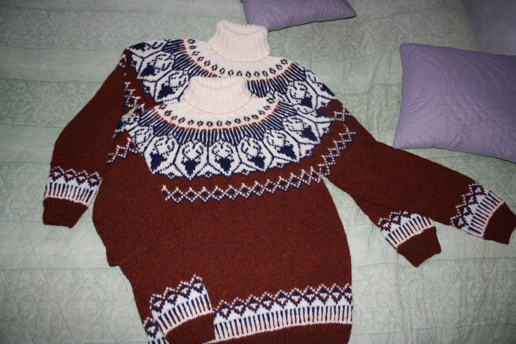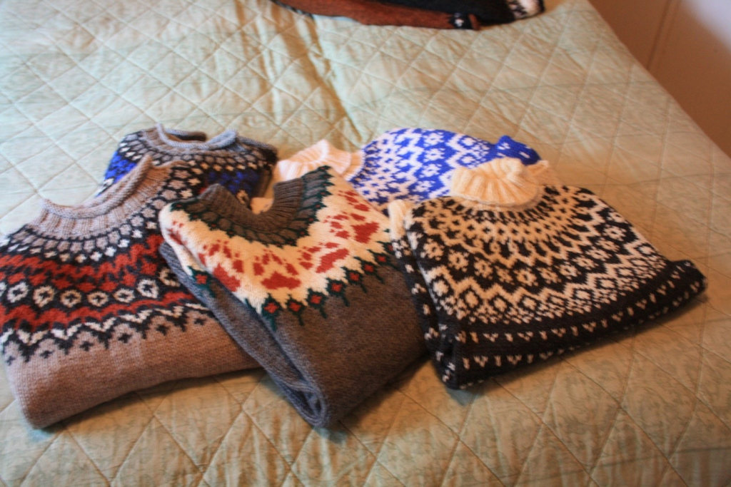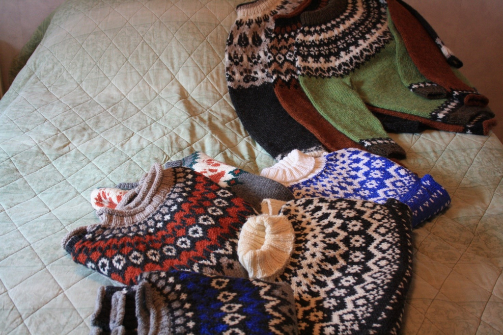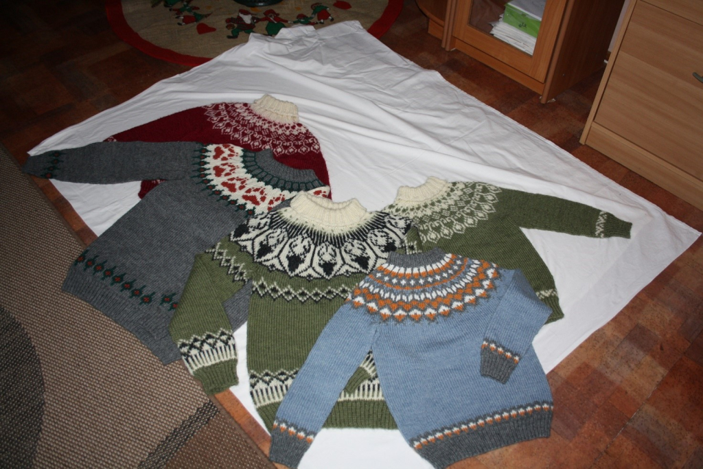 Kun puutarha menee nukkumaan ja ottamaan talvea vastaan, silloin tarvitsen uutta tekemistä. Kaivan puikot korista ja aloitan neulomisen. Islantilaiset ja norjalaiset villapaidat ovat oma mielenkiintoni neulomisessa. Tilasin erilaisia villaneuleiden ohjeita, kirjoja ja lehtisiä, joista opiskelen eri neuleissa oleviin tekniikkoihin ja lankoihin. Myös netistä löysin hyviä videoita ja ohjeita. Ohjeissa on ilmoitettu neuleiden eri vaikeusasteita. Aloitin helpoimmasta ohjeesta, näin miten kuvio syntyy isompaan neuleeseen. Aikaisemmin olen neulonut kuviovillasukkia ja lapasia. Riddari paita on ollut minulle mieluisin neulottava, niinpä mallia on tullut tehtyä useita paitoja. Aina on puikoilla tulossa, joko isompi tai pienempi paita. Aikuisten paita on kuvioneulevaiheessa raskas käsille, siihen olen keksinyt konstit, ei tarvitse koko neuletta käsien varassa pyörittää.