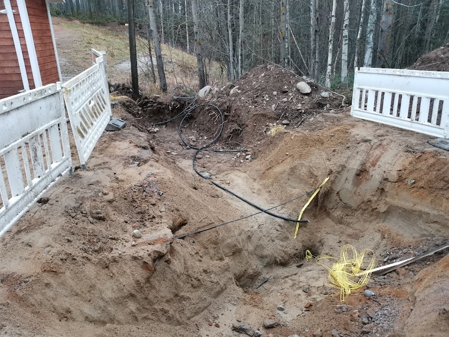 Lamppujen asennus on saatu valmiiksi 2.11.2021. Hankkeen osalta on enää yksi näkyvä vaihe tekemättä ja se on uuden sähköpääkeskuksen asennus. Hiihtomajan läheisyyteen asennettavan sähköpääkeskuksen kaapeleiden kytkemistä varten on kaivettu monttu ja se on merkitty aidalla.