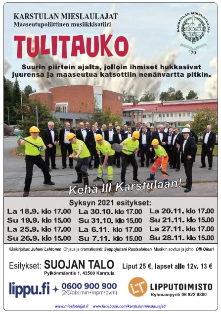 Kun korona sulki Suomen maaliskuussa 2020, meidän reissumme lauantaina 14.3.2020 peruuntui ja siirrettiin viime marraskuulle lauantaiksi 21.11.2020 ja nyt se toteutuu lauantaina 20.11.2021. Lippuasioita hoitaa lipputoimisto (os.Kokkola).