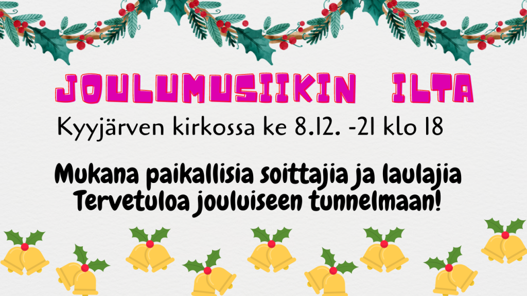 Tälläkin kerralla kutsutaan mukaan kaikkia kyyjärveläisiä musiikin harrastajia, laulajia ja soittajia, ryhmiä ja solisteja. Yhdessä teemme omannäköisemme illan omin voimin, yhteen hiileen puhaltaen. Esitettävän musiikin tulee olla joulumusiikkia, mutta muuten valinta on vapaa. Se voi olla hengellistä tai kevyempää jouluista.