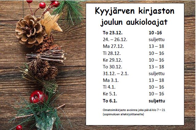 Kuvassa kirjaston aukioloajat joulun aikaan. Tervetuloa!