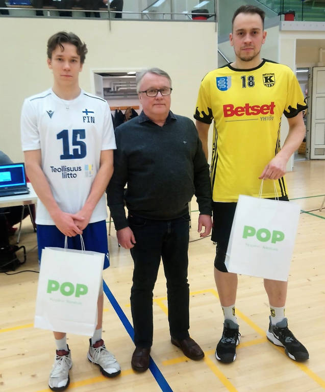 Kuortaneen passari Leevi Väänänen kunnostautui myös syöttöruudussa viekkaitten passien ohella. POP Pankki Kyyjärvi-Karstulan Tj. Urpo Ojala palkitsi parhaat, Väänäsen ohella KyKy-Betsetin Mikko Väliaho pokkasi kotiin viemistä.