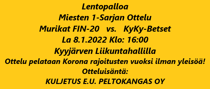 La 8.1.2022 Klo: 16:00 Kyyjärven Liikuntahallilla