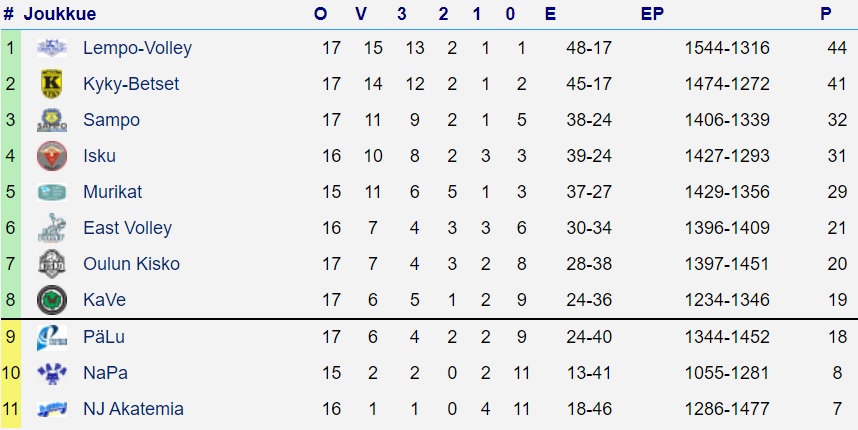 Lentopalloliiton Tulospalvelusivustolle: Miesten 1-sarja/Runkosarja - Lentopalloliitto (torneopal.fi)