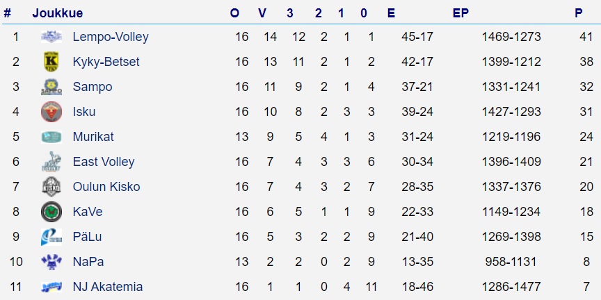 La 12.2. Lempo-Volley vs. KyKy-Betset 3-0 (25-20)(25-23)(25-19)