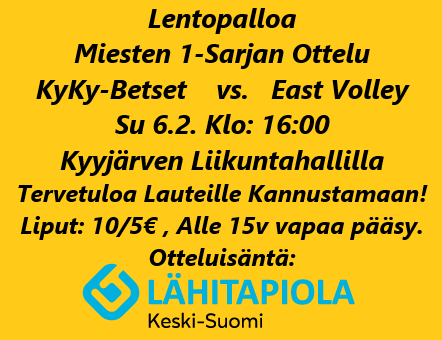 Su 6.2. Klo: 16:00 Kyyjärven Liikuntahallilla