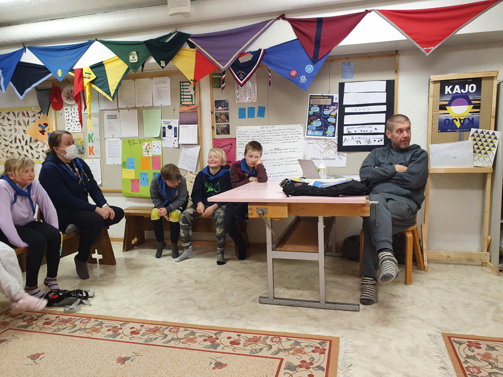Joskus pidämme koko lippukunnan (kaikki ikäkaudet ja aikuiset) yhteisiä koloiltoja. Maanantaina 28.3. kokoonnuimme koko lippukunnan voimin kololle klo 18. Meillä oli vieraana Vesa Mäkelä Keski-Suomen pelastuslaitokselta, ja hän kertoi meille heikoista jäistä. Opimme illan aikana tunnistamaan, mitkä ovat vaaran paikkoja joissa voi joutua veden varaan. Paksukin kevätjää on petollisempaa kuin keskitalven riittävän paksu teräsjää. Jäälle ei pidä mennä ellei ole pakko. Jos jäälle menee, tulee mukaan ottaa ainakin kaveri. Kaverin lisäksi mukaan tulee pakata naskalit, harjanvarsi jonka päässä on piikki, hyvin selkään kiinnitetty reppu, joka sisältää vaihtovaatteet muovipussissa. Pelastusliivit tai kuivapukukaan eivät ole huono vaihtoehto jäälle mentäessä. Jos jää rikkoutuu, tulee pysyä rauhallisena, huutaa apua, ja pyrkiä takaisin tulosuuntaan. Kaverin tehtävä on hälyttää apua, ja yrittää pelastaa jäihin vajonnut takaisin rantaan heittoköyttä, oksaa tai omaa takkia apuna käyttäen. Jäistä pelastumisen jälkeen on myös soitettava 112, sillä avanto ympärillä lojuvine tavaroineen voi käynnistää suurenkin etsinnän. Ja soitto on tehtävä varsinkin jos kaveri on ehtinyt hätäpuhelun aiemmin jo tekemään. Partiolaiset saivat myös itse pohtia ryhmissä, mitä vaaroja tutuissa paikoissa voi olla. Ilta oli todella mielenkiintoinen ja ajatuksia herättävä. Kiitoksia Vesalle vierailusta!