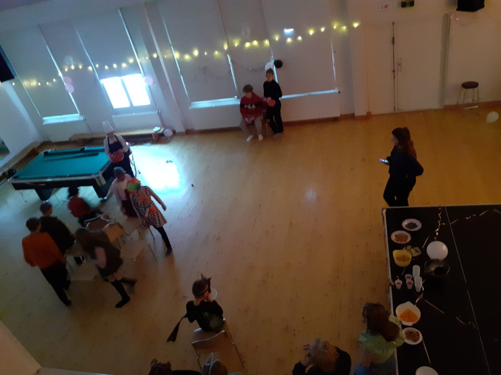 Ohjelmassa oli leikkejä, pelejä ja herkuttelua. Osallistujien mielestä illassa kivointa oli yhdessä oleminen ja pelaaminen. Paikalla oli paljon hauskasti pukeutuneita lapsia ja asuun panostaminen kannatti, sillä paras asu palkittiin. Valitettavasti parhaan asun palkinnon voittaneella peikolla oli niin kova meno päällä, ettei ennättänyt kuvattavaksi!