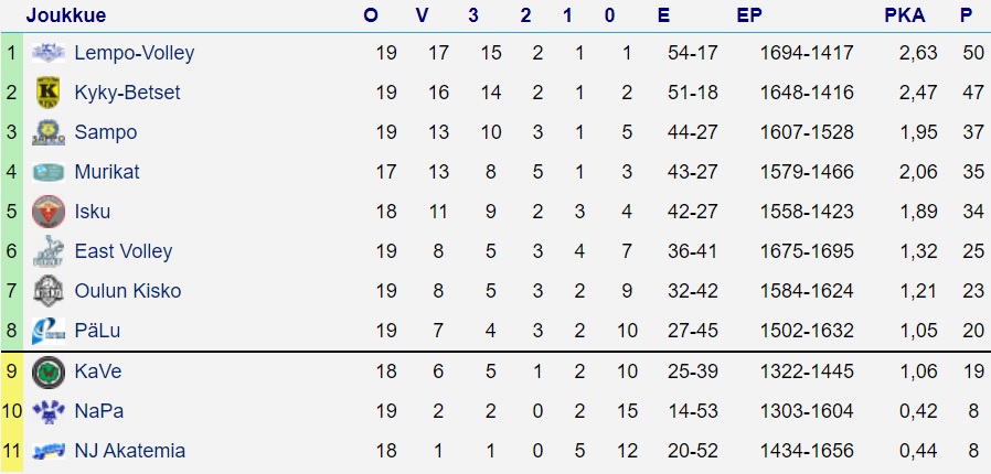 Lentopalloliiton Tulospalvelusivustolle: Miesten 1-sarja/Runkosarja - Lentopalloliitto (torneopal.fi)
