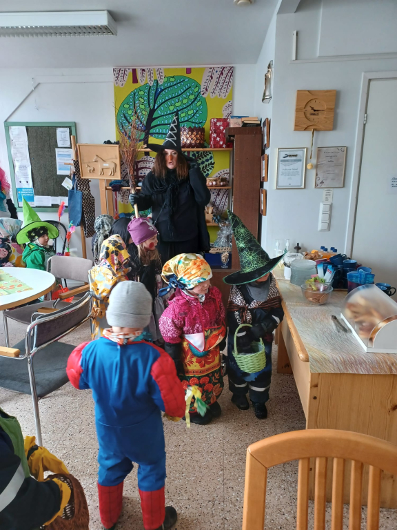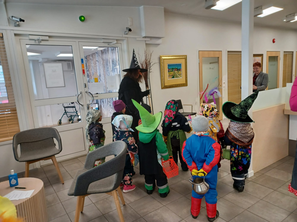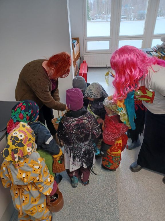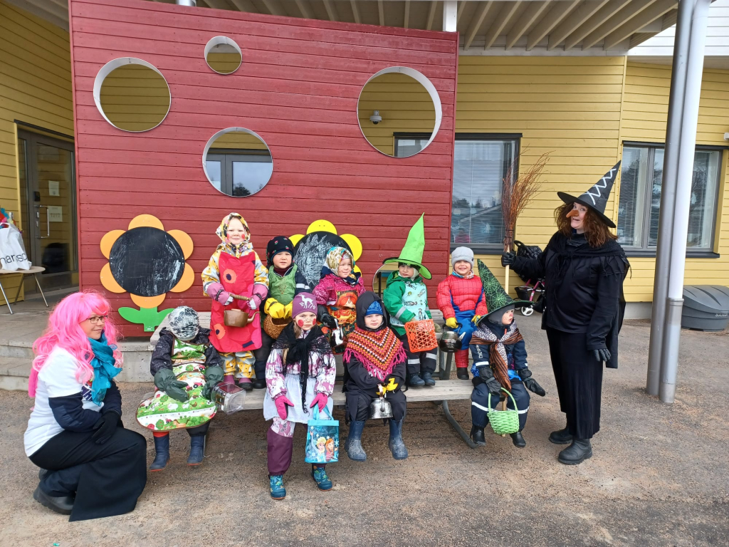 Vekaroiden virpomisreissulla oli mukana myös Ursula-noita! Reissu venähti melkein kolmen tunnin mittaiseksi. Ursulalla on nimittäin tapana hankkia uusia ystäviä reissuillansa, Niin kävi myös tällä kertaa. Jos tunnistat itsesi Ursulan uudeksi ystäväksi niin TERRVE VAAN! (Jotkut uusista tuttavista tosin voisivat sanoa "hau" ja "muu") Täytyy kyllä kehua meidän lapsia! Kaikki jaksoivat hienosti kävellä koko pitkän matkan eikä kukaan valittanut! Meillä oli melkoisen mukava ja onnistunut päivä vaikkei aurinko meille näyttäytynytkään! :)
