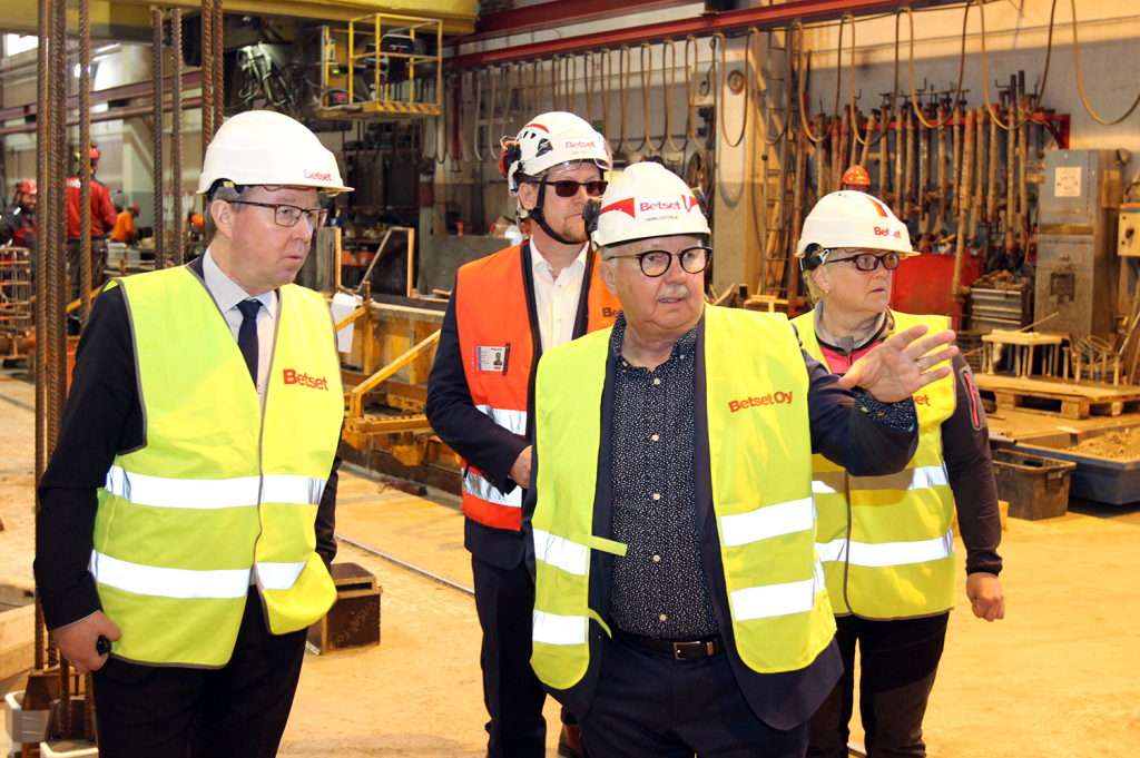 Betsetin toimintaa esittelivät teollisuusneuvos Hannu Löytönen, varatoimitusjohtaja Olli Löytönen sekä myyntijohtaja Jari Laajala. Toivo Löytönen perusti yrityksen Kyyjärvelle vuonna 1950 ja 2020-luvulla kolmas sukupolvi on siirtymässä vetovastuuseen. Kokoushuoneen seinällä on ilmakuva yrityksen alkutaipaleelta ja samasta vinkkelistä kuva nykyisestä tehtaasta. Betset Oy on kasvanut yritysostojen myötä yhdeksi Suomen suurimmista betonialan toimijoista. Liikevaihtoa kertyi viime vuonna 123 miljoonaa ja työvoimaa koko yrityksessä on keskimäärin yli 620 henkeä. Tehtaita on yhdeksällä paikkakunnalla sekä yhteistyöyritys Virossa.
