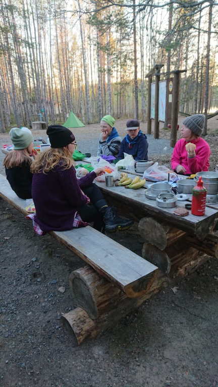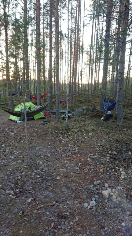 Matka Sysilammelle kesti 5 tuntia (10 km yhteen suuntaan, sama myös takaisin päin), ja se oli super-raskas. Oli paljon kiviä ja juuria, ja selässä erittäin raskaat rinkat. Sysilammella yövyimme riippukeinuissa. Riippumatossa oli mukava nukkua, vaikka yöllä oli aika kylmä. Aamulla keitimme kahvit ja puurot, teimme aamutoimet ja lähdimme kävelemään takaisin Koirasalmeen. Sää oli koko matkan hyvä, ja retki oli hauska.