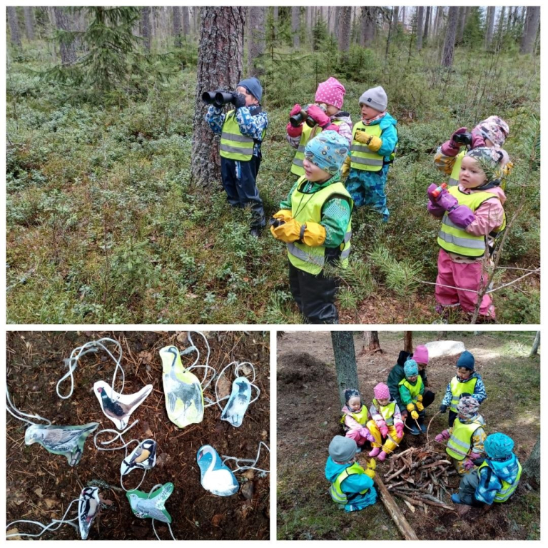 Kevät alkaa pikku hiljaa vaihtua kesäksi, vihdoinkin! Vekaroiden loppukevät on kulunut pitkälti heräilevää luontoa tarkkaillessa. Vietimme lintuviikkoa ja kävimme bongailemassa lintuja ja muita eläimiä kiikareiden kera, rakensimme linnunpönttöjä ja veimme ne metsän reunaan sekä askartelimme lintutaulut ja kuuntelimme metsässä lintujen ääniä. Parin viikon ajan seurailimme koulurakennuksen takana olevaa vesiojaa. Sinne on nimittäin aina keväisin ilmestynyt sammakonkutua. Kävimme useaan otteeseen katsomassa vedessä uivia pieniä nuijapäitä, tai näin ainakin luulimme. Tällä viikolla ihmettelimme, kun nuijapäät eivät olleet hirveästi kasvaneet ja niissä näkyi omituisia karvoja. Tulimmekin siihen lopputulokseen, että vedessä ei ollutkaan pieniä sammakkovauvoja vaan miljoona tsiljoona hyttysen toukkaa!! Ei tarvitse siis kesällä kenenkään yksin olla...