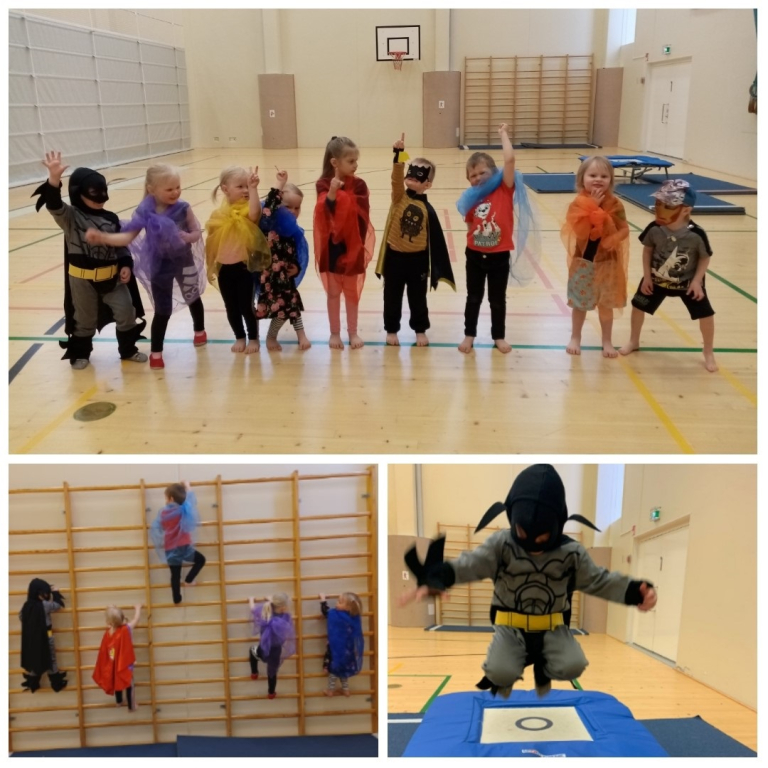 Tässä kesän kynnyksellä on ollut myös muuta mielenkiintoista puuhaa: ambulanssin vierailu, pomppulinnassa pomppimista, supersankarijumppaa, kokkikerhoa, vappunaamiaiset...