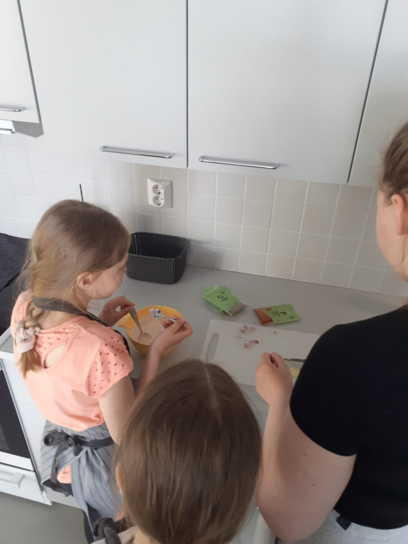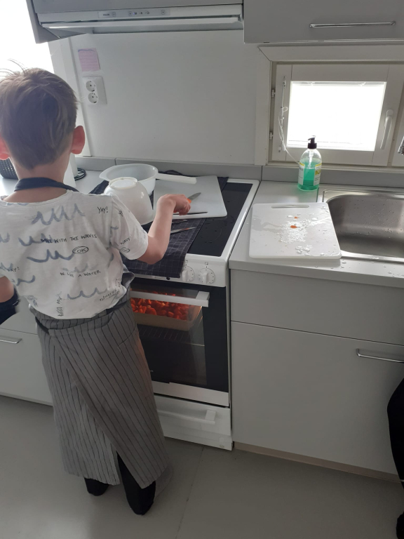 Innokkaat leiriläiset pääsivät ensimmäisen kesälomaviikon aikana valmistamaan joka päivä aamiaisen, lounaan ja välipalan. Viikon aika valmistui mm. soijamakronilaatikkoa, jauhelihakeittoa, pizzaa ja teeleipiä.