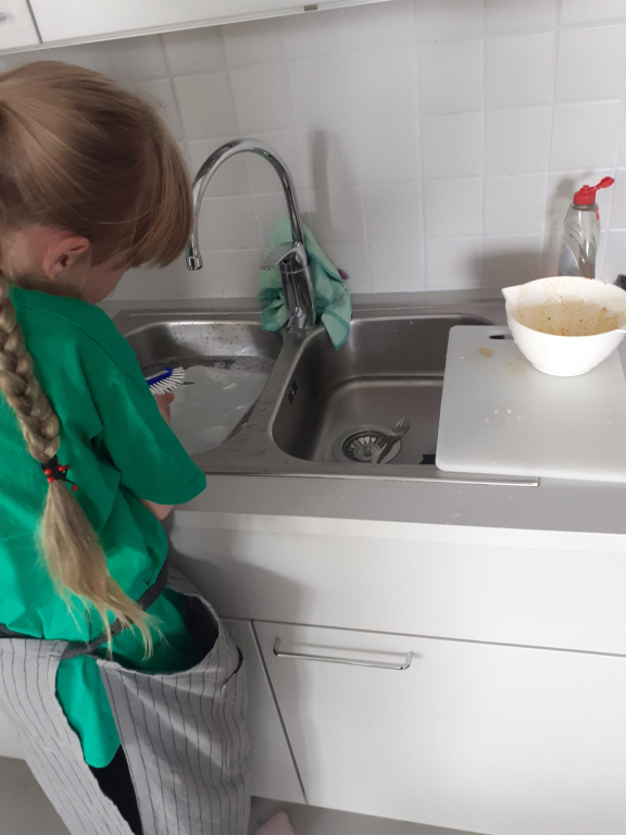 Kokkailun ohessa syntyi paljon tiskiä ja siivottavaa, mutta nämäkin saatiin sovussa hoidettua tasapuolisesti osallistujien kesken. Leirillä oli 4H:n työntekijän lisäksi apuna kaksi nuorta ohjaajaa, niin jokainen leiriläinen sai hyvin apua ja neuvoja viikon aikana.