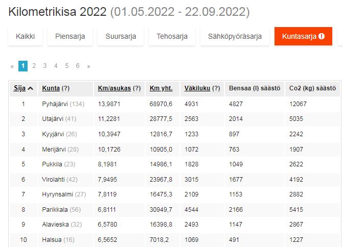 Kyyjärvi on polkenut (2 kuukautta) kuntasarjassa sijalle 3. Yhteenlaskettuja kilometrejä: 12 816,70.
