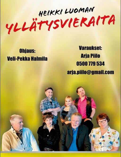 Näytelmän Yllätysvieraita on kirjoittanut Heikki Luoma, ohjannut Veli-Pekka Halmila ja näyttelijöissä on tuttuja nimiä.