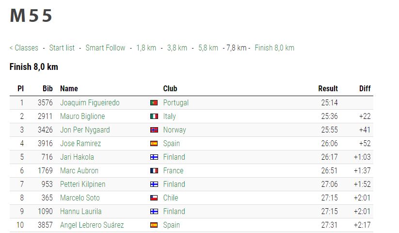 Jari Hakola juoksi M55 maastojuoksun 8 kilometrillä hienosti viidenneksi.