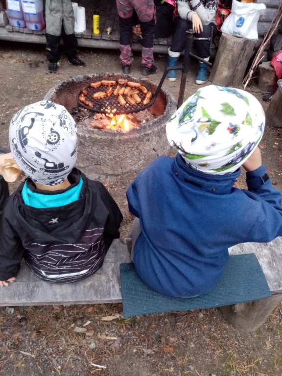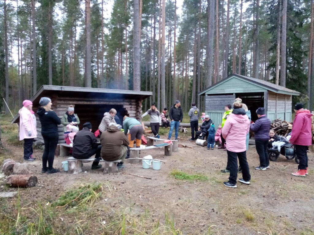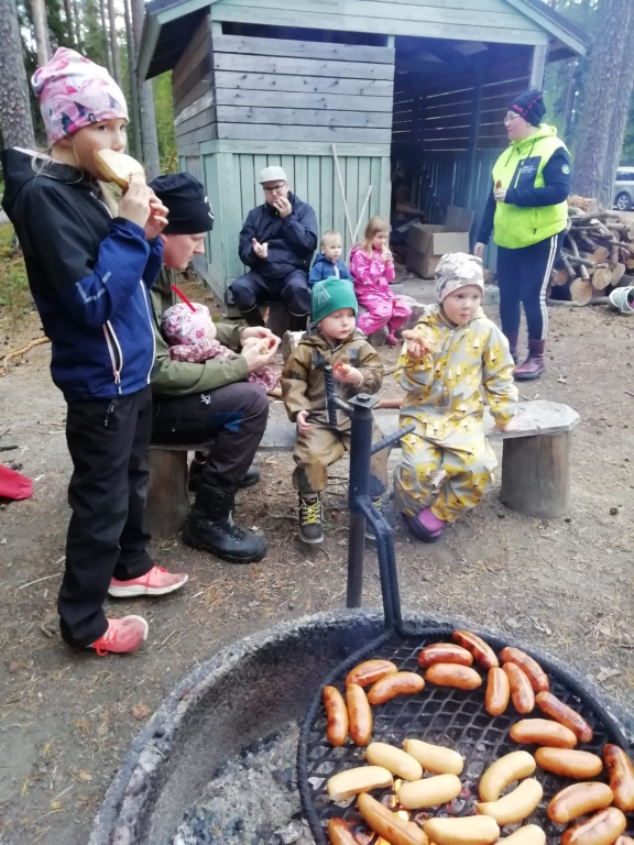 Rasteilla piti tehdä erilaisia hyppyjä, ämpäriin etsittiin luonnosta värejä sekä jotain kovaa ja pehmeää. Yhdellä rastilla ämpäreihin kerättiin käpyjä ja niitä heitettiin renkaiden läpi. Heittoja kokeiltiin läheltä ja kaukaa sekä myös sillä "väärällä" kädellä. Ilta huipentui makkara- ja mehutarjoiluun! Makkaroita olikin yllin kyllin, sillä valitettavasti moni perhe joutui perumaan tulonsa syystä tai toisesta. Nälkäisimmät lapset söivätkin jopa neljä makkaraa! Syöpöttelyn lomassa oli mahdollista keskustella varhaiskasvatukseen liittyvistä asioista.