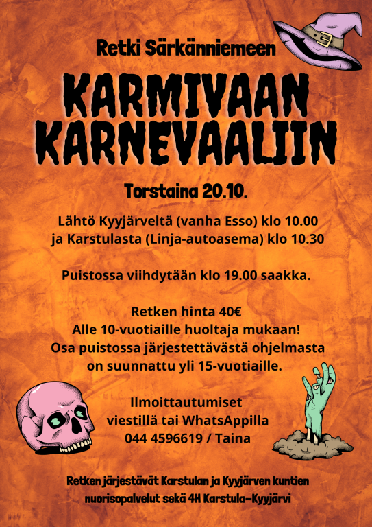 Retken järjestävät Karstulan ja Kyyjärven kuntien nuorisopalvelut ja Karstula-Kyyjärven 4H-yhdistys.