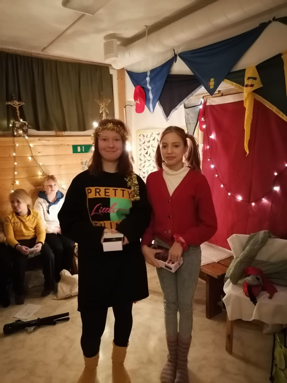 Esitysten päätteeksi jokainen ikäkausi vastaanotti syksyn aikana suorittamansa merkit. Lippukuntamme teki tänä vuonna ennätyksen adventtikalenterien myynnissä: 150 myytyä kalenteria! Suuret kiitokset jokaiselle kalenterin ostajalle toimintamme tukemisesta. Viisi partiolaista oli myynyt yli 12 kalenteria, joten he tulevat saamaan tästä myöhemmin tehotonttumerkit. Kaikki myyjät palkittiin lippukunnassamme retkijakkaroilla.