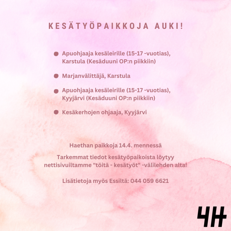 Karstula-Kyyjärven 4H:n kesätyöpaikat on haettavissa 14.4. saakka!
