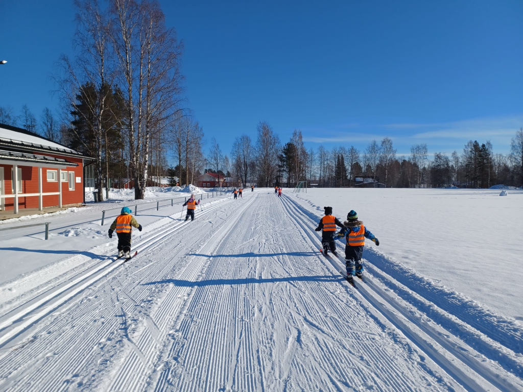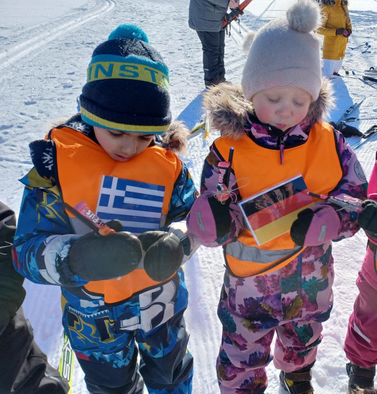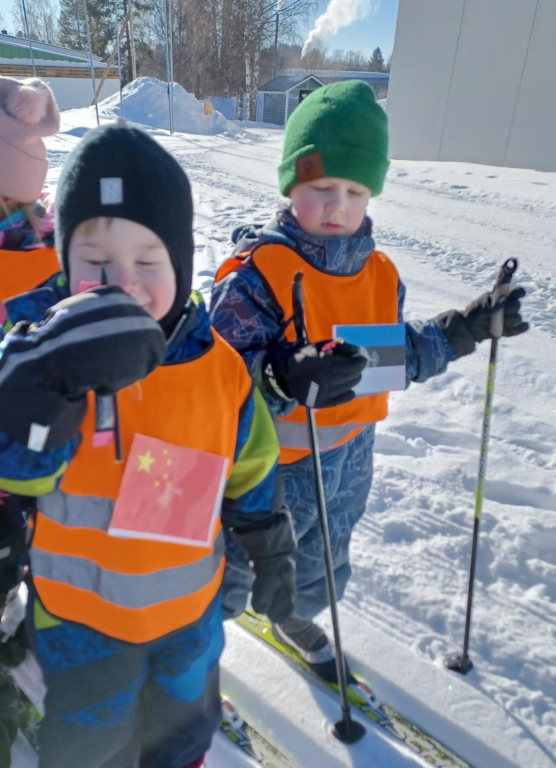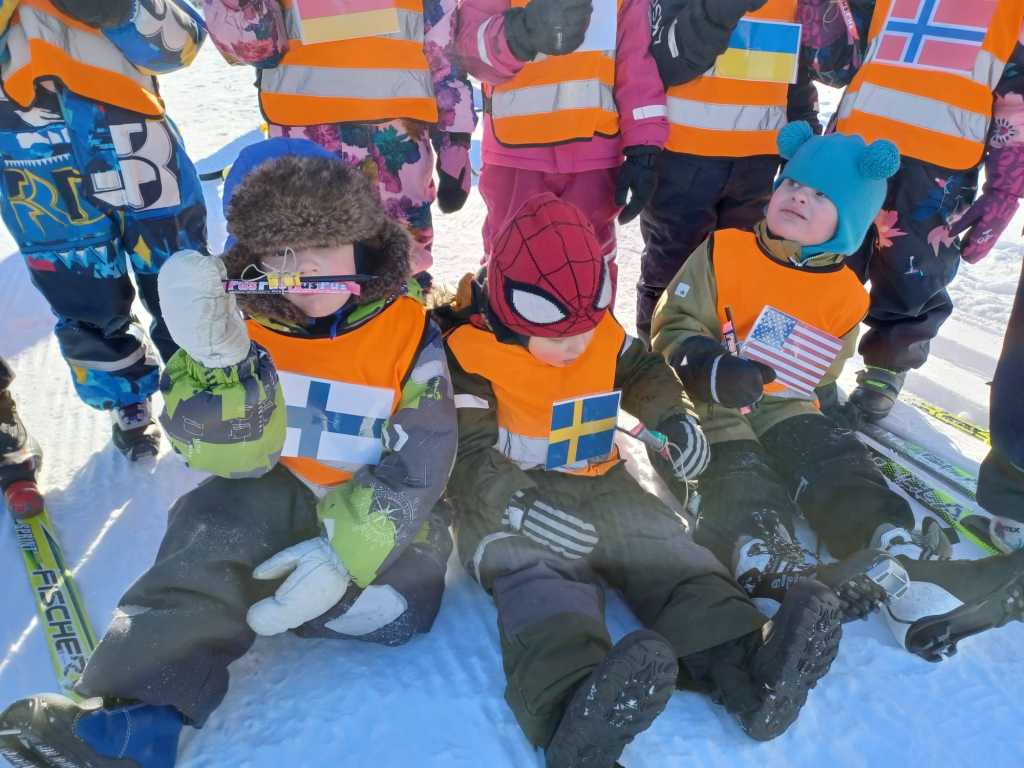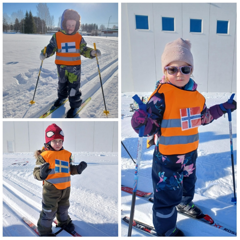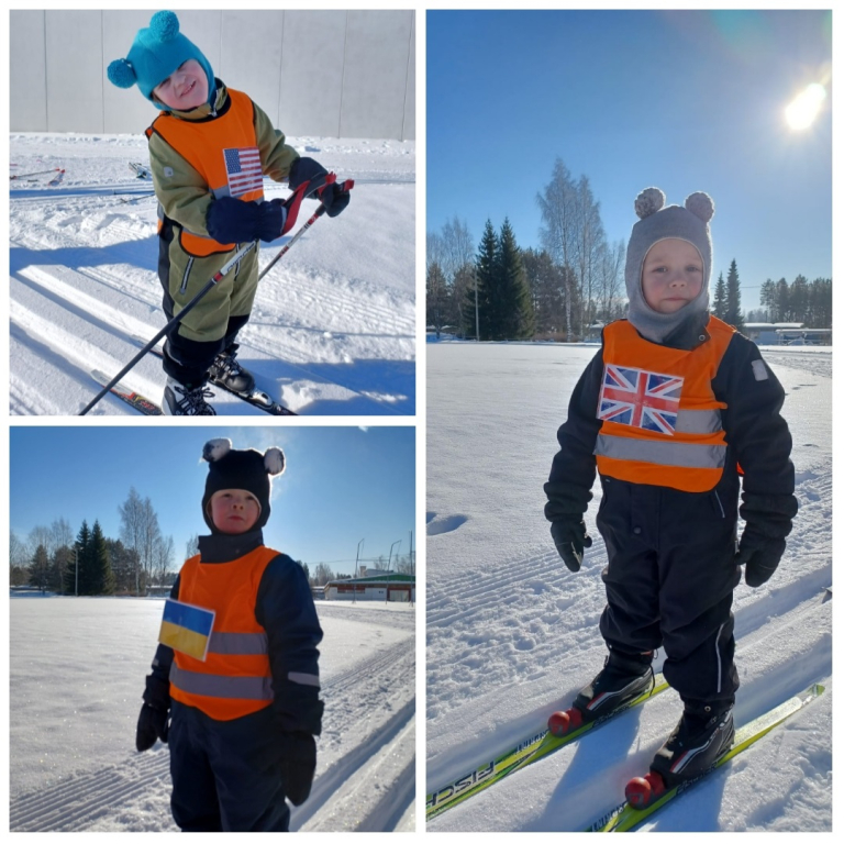 3-5 -vuotiaiden Tenavien ryhmässä pidettiin tänään hiihdon maailmanmestaruuskilpailut! Yhteislähtöön osallistui 14 eri maan edustajaa. Tässä kilpailussa kaikki olivat voittajia ja kaikki tietysti myös palkittiin! Aamulla aikaisin pakkasta oli jopa -28 astetta. Aurinko onneksi lämmitti ja pakkanen alkoi hellittää niin, että päästiin ladulle! Ja olipa kyllä mahtava hiihtosää!
