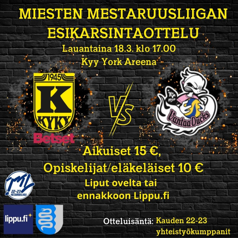 (Kausikortit 2022-2023 ovat voimassa KyKy-Betset vs Vantaa Ducks kotiotteluissa)