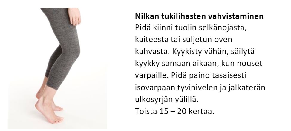 - - seisessä voit pitää kiinni tuolin selkämyksestä tai ovenkahvasta
