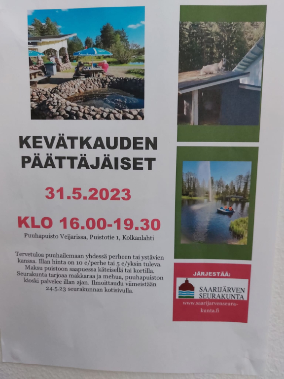 Hinta 10 e/perhe, 5 e/yksin tuleva. Maksu paikan päällä käteisellä tai kortilla.