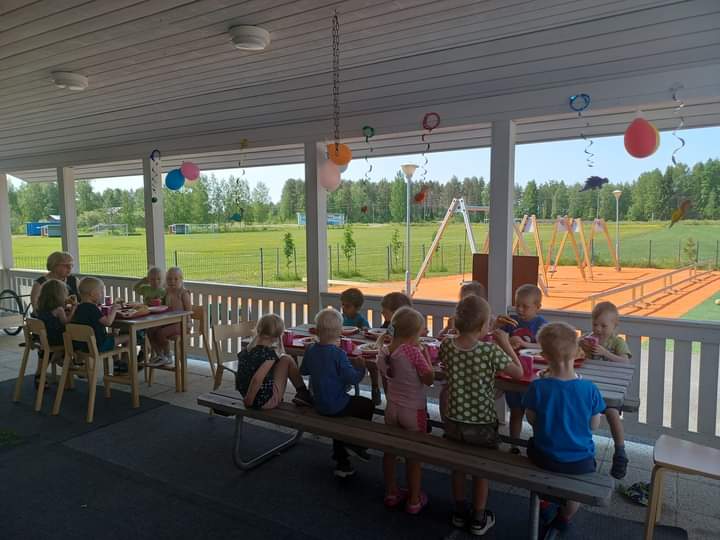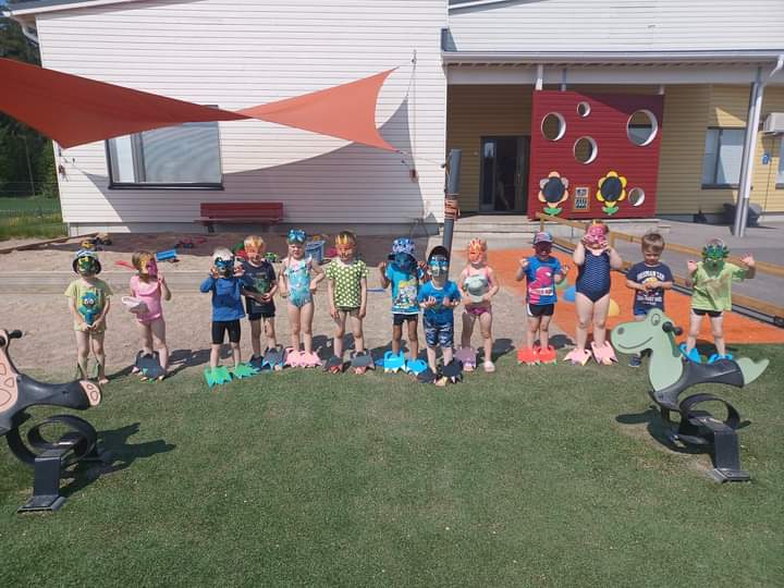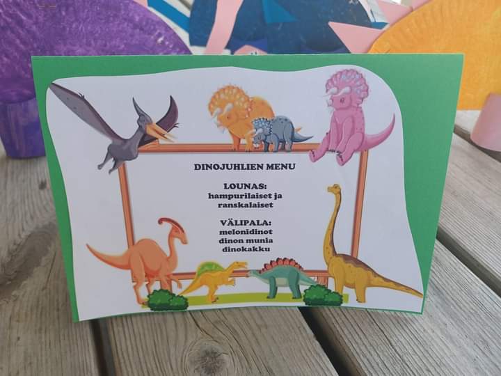 Torstaina 15.6. koitti vihdoin kauan odotettu päivä Nopolan päiväkodin Tenavien ryhmässä. Ryhmässä oli jo muutaman viikon ajan ollut aiheena dinosaurukset ja nyt teema huipentui dinosaurusjuhliin! Tarkoituksena oli myös viettää ihan koko päivä ulkona, mutta helteen takia jouduttiin vähän taipumaan ja tultiinkin sisälle lepohetkelle. Juhlapäivää oli suunniteltu yhdessä lasten kanssa ja sitä varten oli tehty erilaisia dinoaskarteluja.