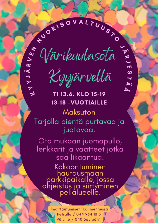 Kyyjärven nuorisovaltuusto järjestää värikuulasotaa tiistaina 13.6. klo 15-19.