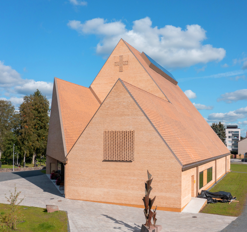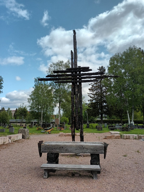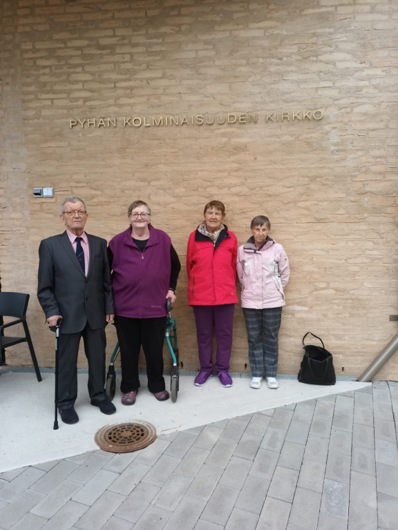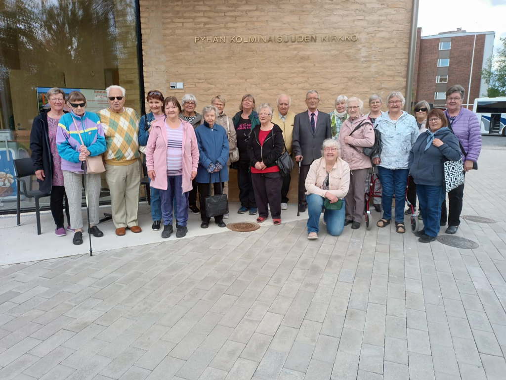 Ylivieskassa meitä odotti 4.4. 2021 valmistunut Pyhän Kolminaisuuden kirkko. Matka oli sopivasti tietenkin ajoitettu Kolminaisuuden päivän jälkeiselle viikolle. Erikoiselta se ulkoa päin näytti, sillä seinät ja katto olivat samaa väriä. Kirkkosalissa ei ollut ikkunoita, mutta valoa tuli kuitenkin riittävästi kirkkosaliin katon harjassa piilossa olevista ikkunoista. Eteisestä pääsi myös seurakuntasaliin, joka toimii arkipäivisin edullisena lounasravintolana. Siellä saatiin mekin mahat täyteen.