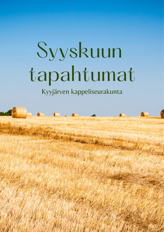 su 10.9. klo 15.00 Koko seurakunnan yhteinen syyskauden aloitus Saarijärven seurakuntatalon ympäristössä