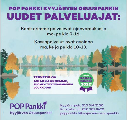 POP Pankki Kyyjärven Osuuspankki toivottaa asiakkaillemme aurinkoista syksyä!
